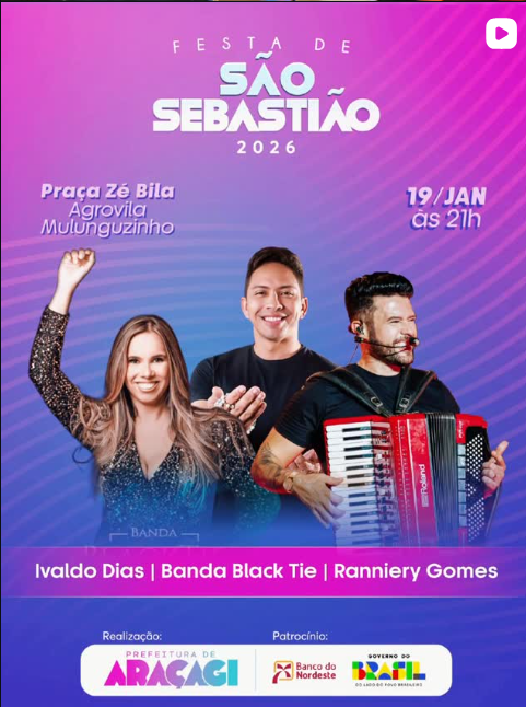 A festividade continua no dia 19 de janeiro, desta vez na Praça José Bila, em Agrovila Mulunguzinho. A programação contará com louvor e fé conduzidos por Ivaldo Dias, muito forró com Ranniery Gomes e baile com a Banda Black Tie, mantendo o clima de tradição e alegria na comunidade.