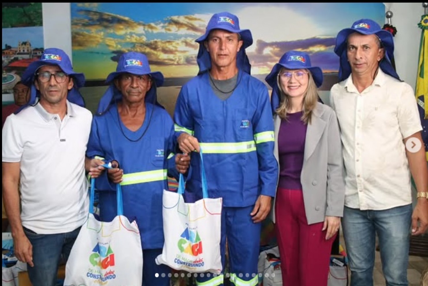 Na tarde desta sexta-feira (27), a Prefeitura Municipal de Araçagi realizou a entrega de novos uniformes e Equipamentos de Proteção Individual (EPIs) para garis da Secretaria de Infraestrutura e motoristas das secretarias de Saúde e Transportes. A cerimônia ocorreu no gabinete da prefeita.