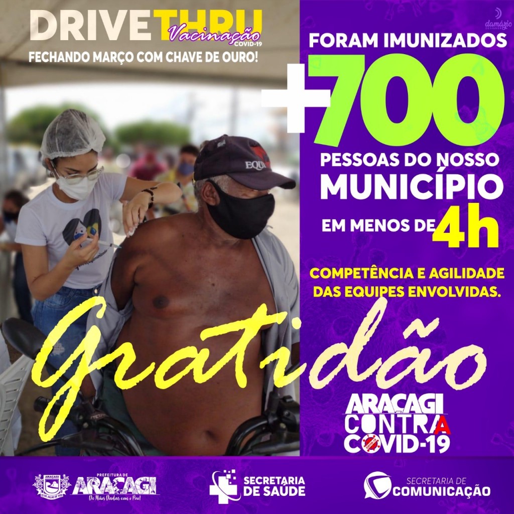 Em menos de 4 horas as equipe de apoio da imunização conseguiu imunizar +700 pessoas com a coronavac.