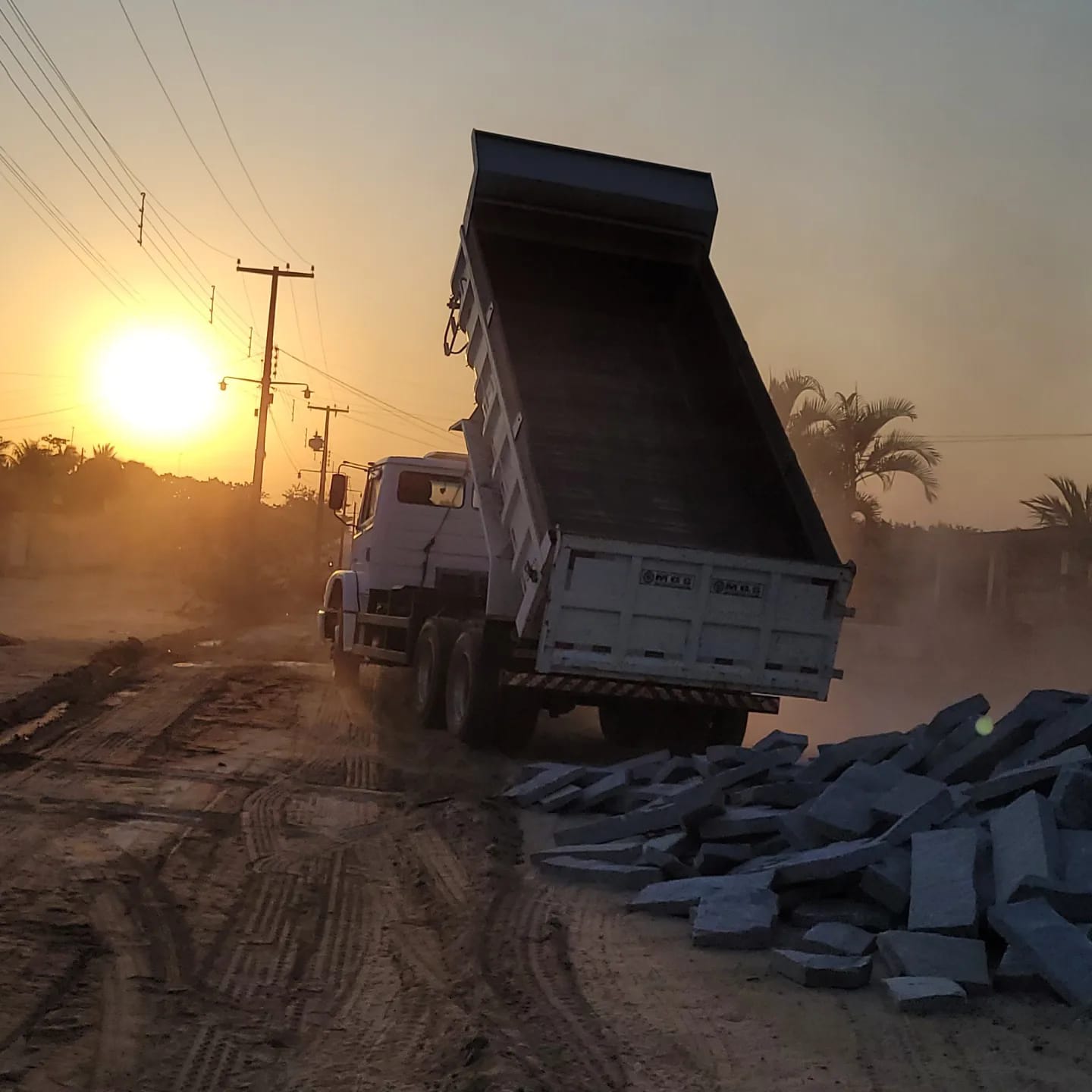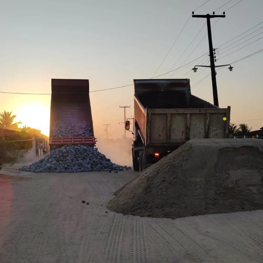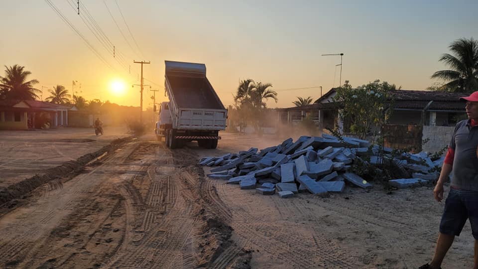 Pouco antes do início da reunião, os serviços foram iniciados com a terraplanagem da rua e com a chegada dos materiais, para que a pavimentação já seja iniciada na próxima segunda-feira (26).