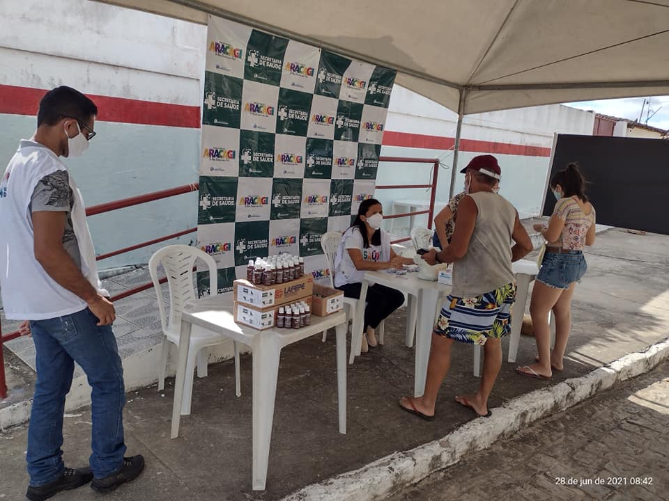 A Secretaria de Saúde disponibilizou teste rápido de COVID-19, que é o principal foco dessas ações. O Município de Araçagi vem trabalhando de forma incisiva no Combate ao Coronavírus, os resultados dessas testagens em massa realizadas nessas ações intinerantes são refletidos nos boletins, vemos um aumento de casos positivos, isso ocorre em razão de estarem sendo feitos mais testes e com isso identificando um maior numero de pessoas infectadas pelo coronavírus, esse é um dos objetivos da Ação, mostrar os números reais do nosso município, indo mais próximo das pessoas e prestando os serviços nas comunidades.