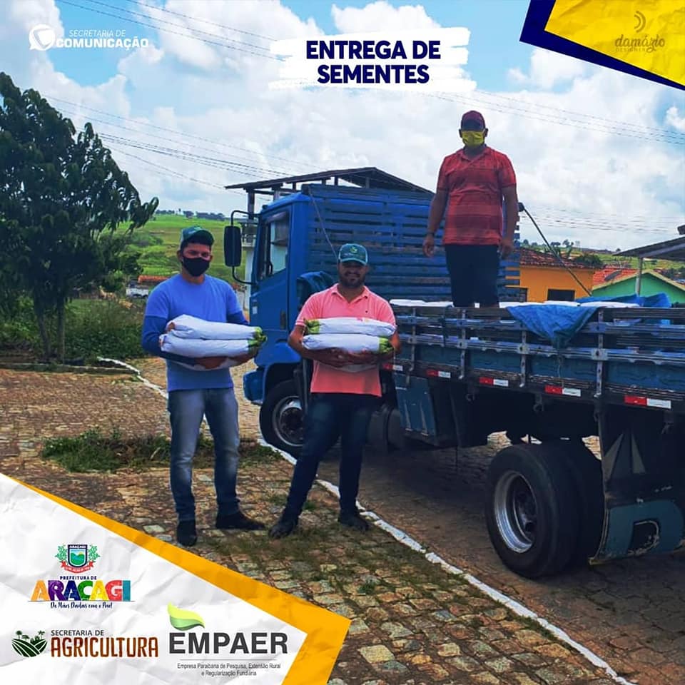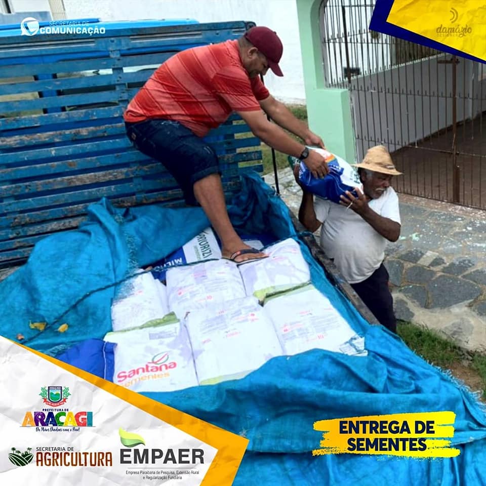 A Prefeitura Municipal de Araçagi através da Secretaria de Agricultura em parceria com a EMPAER, fez a retirada na cidade de Esperança de 2.200 kg de sementes (milho, feijão e sorgo) enviadas pela SEDAP, a Secretária de Agricultura Cânndida Pontes foi pessoalmente fazer essa retirada.